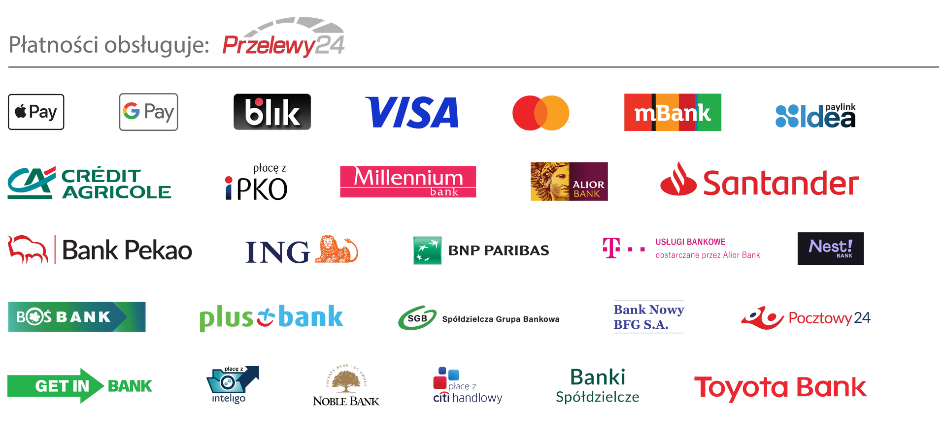 Przelewy24 to największy operator płatności online w Polsce, oferujący innowacyjne rozwiązania dla rynku e-commerce. Korzystanie z usług serwisu Przelewy24 pozwala na przeprowadzanie transakcji na wszystkich urządzeniach i przy użyciu wielu metod płatności – szybkich przelewów, BLIKA, kart płatniczych, płatności mobilnych (Apple Pay, Google Pay), portfeli elektronicznych czy rat.